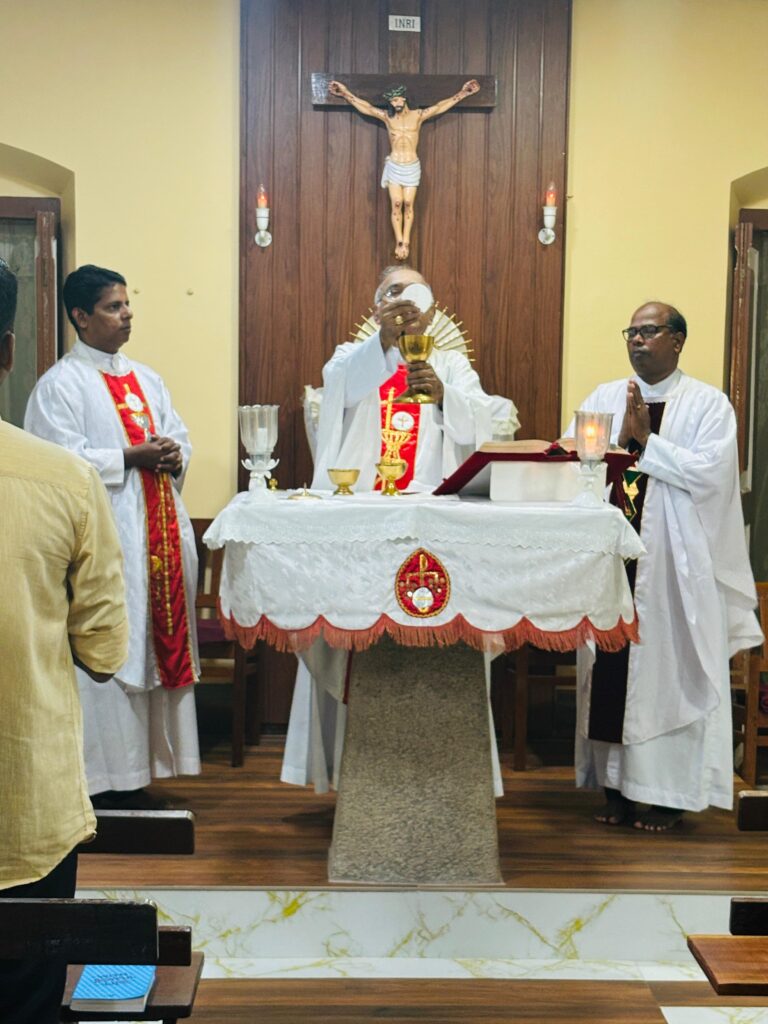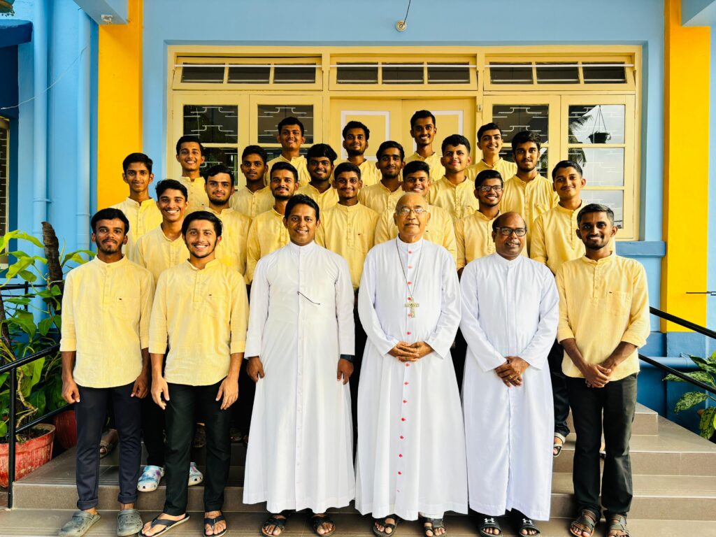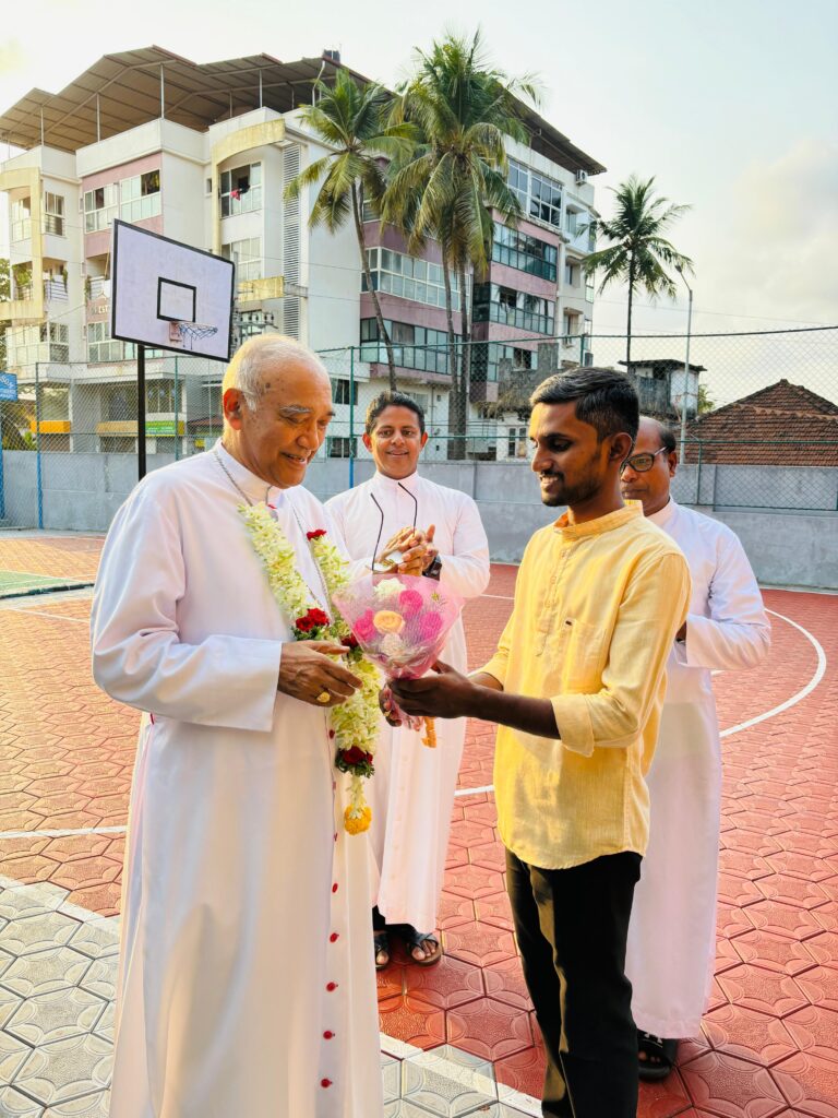 MANGALORE, 26th April: Bishop Emeritus, Most. Rev. Dr. Aloysius Paul Dsouza visits Gladsom Home on 26th April Friday. Bishop Emeritus had expressed his desire to visit Gladsom Home on Friday 26th April. All the Brothers welcomed the Bishop along with their Rector, Spiritual Director, and Regent of the house.
