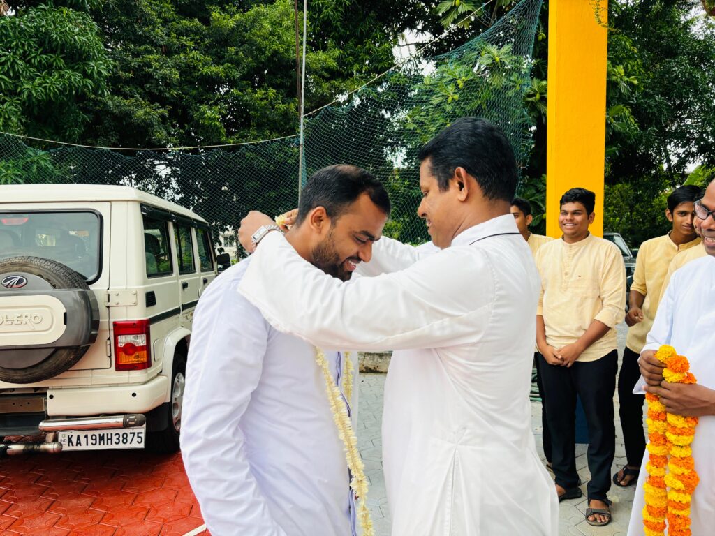 spiritual Director Fr Harry Dsouza and other Students welcomed him to the House