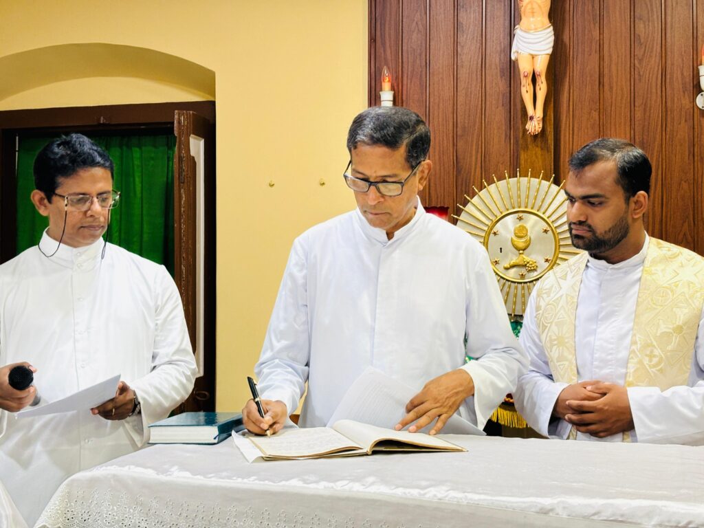 Fr Clany Took up the charge by signing the registar. Very Rev. Fr Maxim L. Noronha VG of Mangalore Diocese, was the representative of Bishop, whose presence Fr Rector assumed his responsibility. Thereafter VG spoke about the importance of formation and wished both,the new rector as well as outgoing Rector. After which Fr Clany spoke about his life in Gladsom 20years ago and now he is glad to take up this responsibility.