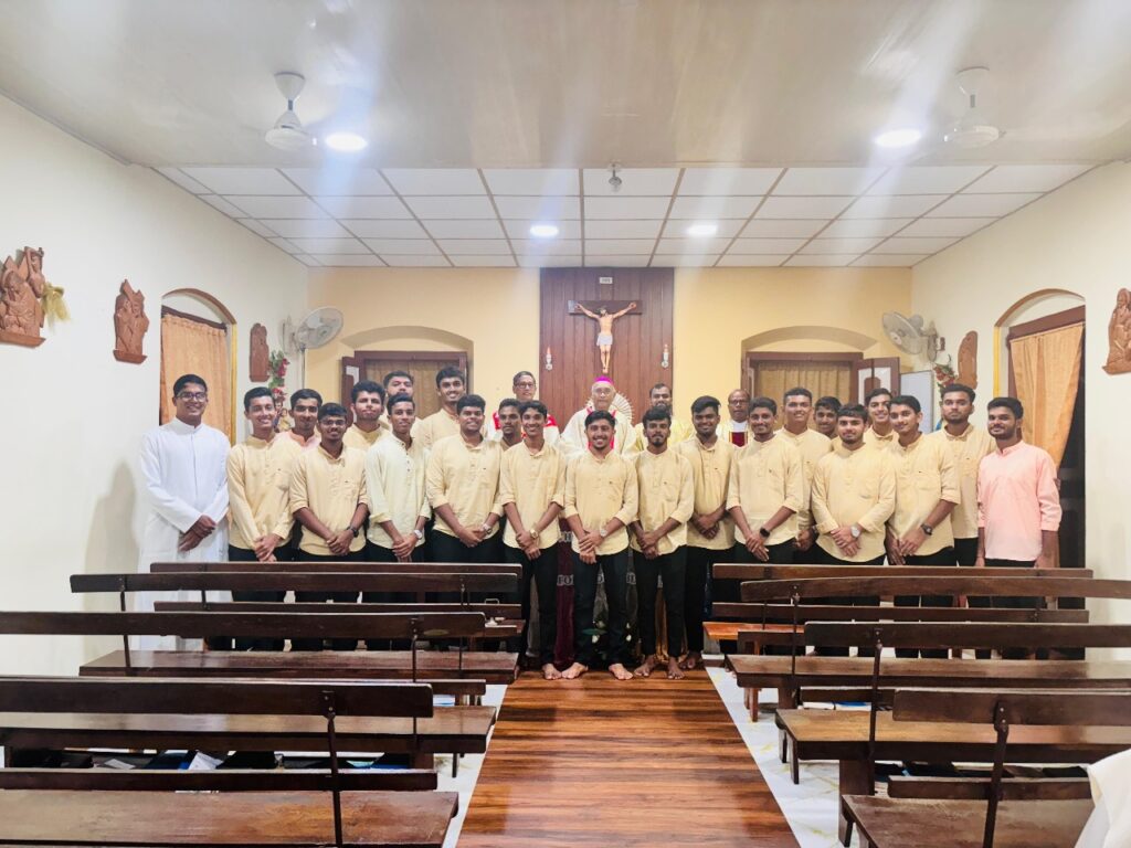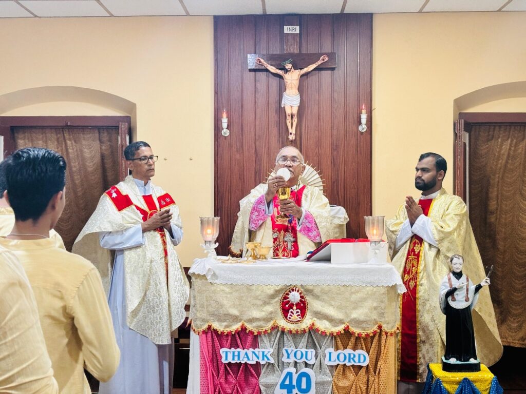 Following the mass, a small gathering was held, where Fr. Clany, the Rector, extended a warm welcome to the dignitaries and guests. The occasion was marked by a cake-cutting ceremony, ably compered by Bishop Emeritus Dr. Dsouza. The Vocation Promotion Brochure, specially prepared for the Ruby Jubilee, was unveiled by the dignitaries.