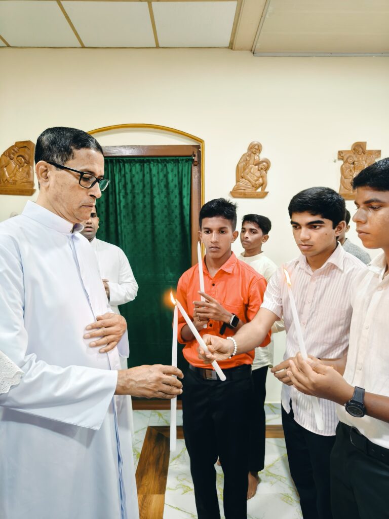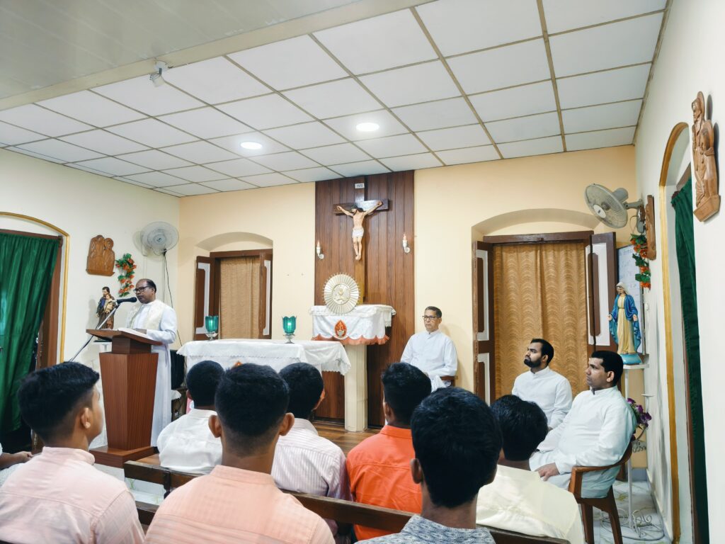 A short welcoming program followed, where Fr Clany, the Rector, introduced the new Brothers and shared a brief history of the house. The program was attended by esteemed guests, including Fr Ashwin Aranha, Vocation Promoter of Udupi Diocese, Fr Peter Gonsalves, and parents of the candidates.