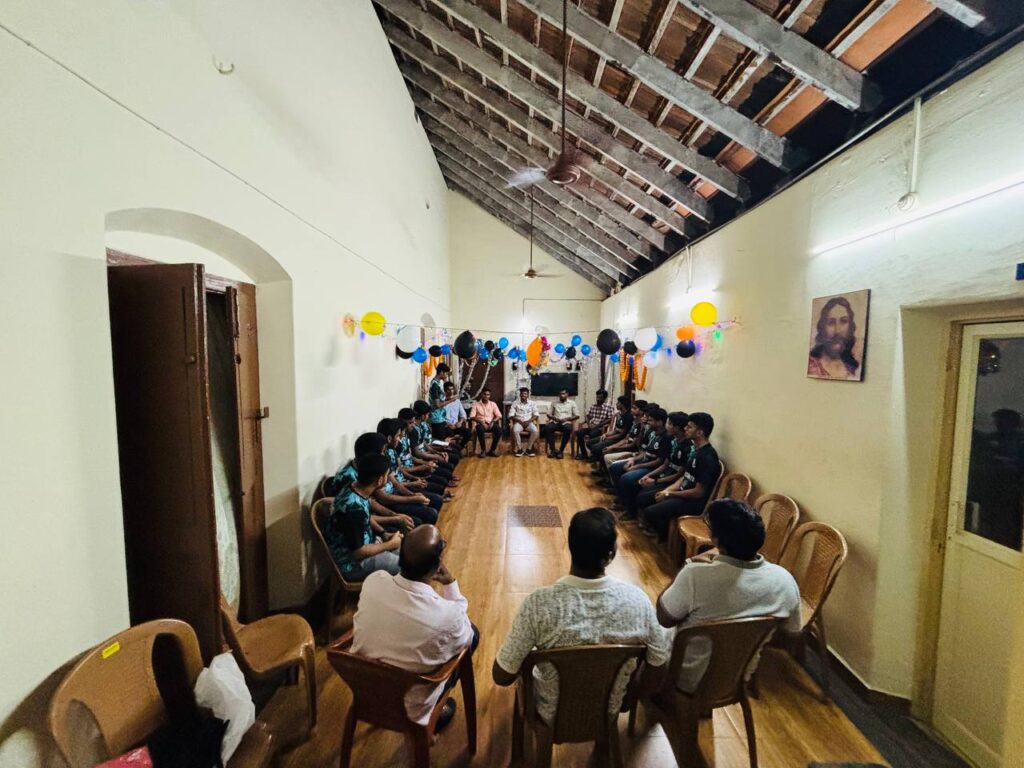 Mangalore, 14 May 2025 – The junior brothers of Gladsom Home organised a heartfelt farewell programme for the outgoing third-year brothers on Wednesday, 14 May. They are Allan Mascarenhas, Brian Dsouza, Brijesh Ferrao, Jaison Dsouza(Udupi) and Roydan Dsouza(Udupi). The event was a warm gesture of gratitude and appreciation for the seniors as they prepare to move forward in their formation journey.