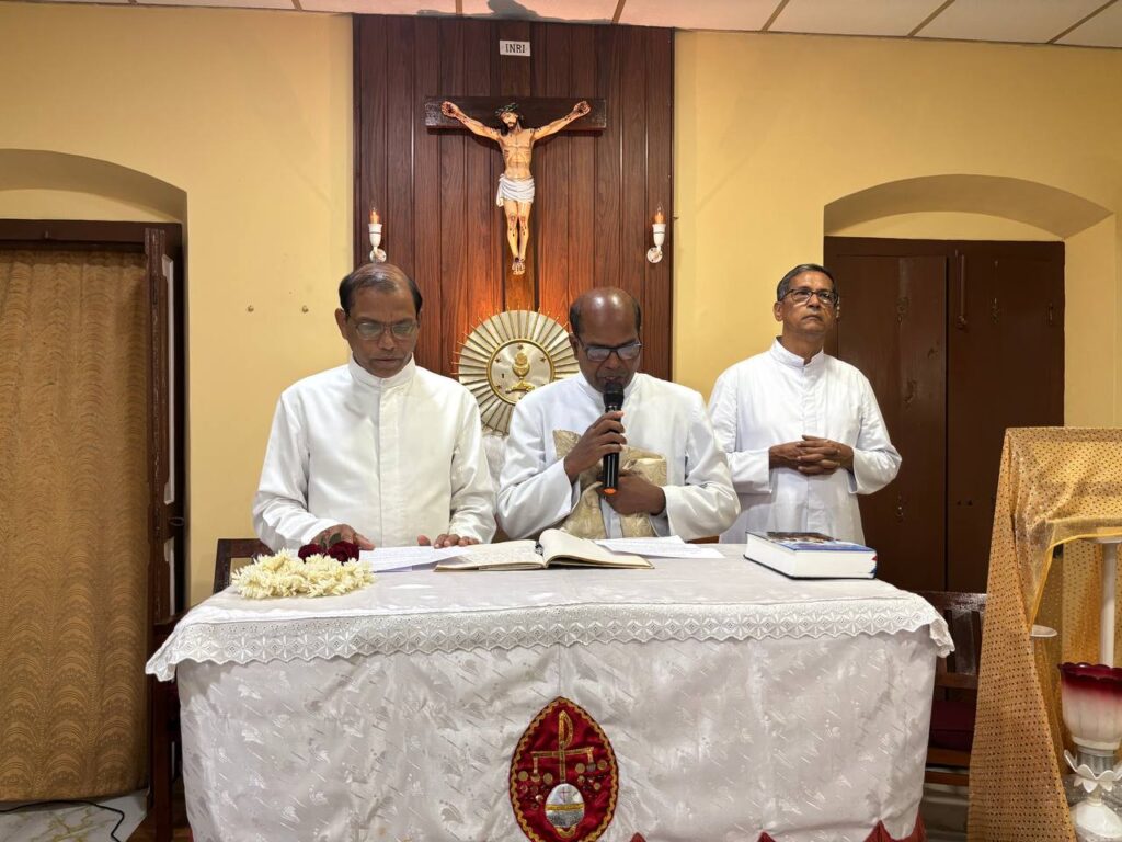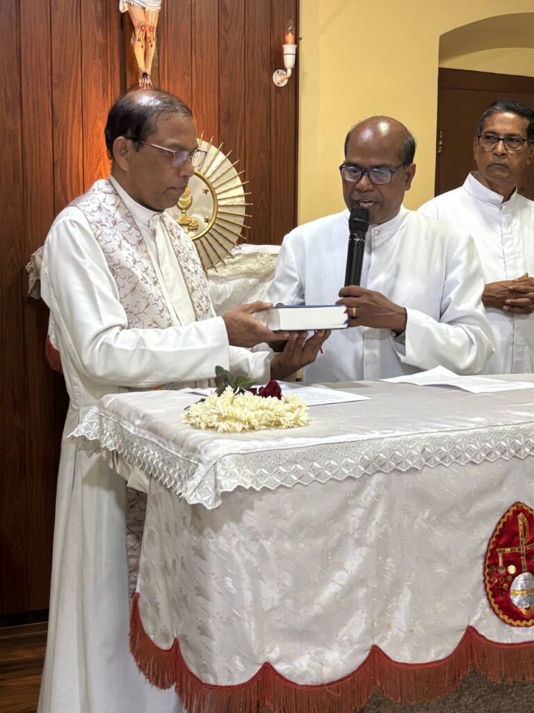 Mangalore, June 3, 2025: Rev. Fr Vincent D’Souza officially took charge as the Spiritual Director of Gladsom Home for Students, marking a new chapter in the spiritual journey of the formation house. The appointment was ceremoniously celebrated on the evening of June 3, 2025, in the presence of the Rector, Rev. Fr Antony Clany D’Souza, the outgoing Spiritual Director Fr Harry D’Souza, the Regent Br Aashton Dsouza, and the entire Gladsom community.