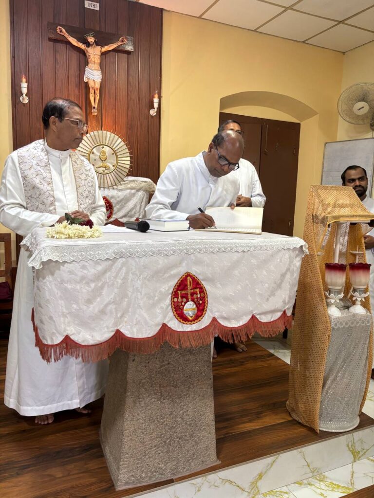 The event commenced with a meaningful prayer service, invoking God’s blessings upon the new ministry. In a symbolic gesture, Fr Vincent formally assumed his role by signing the official register, marking the canonical handover of responsibilities.